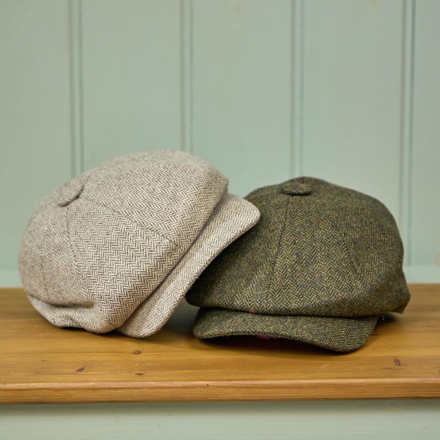 A classic 8 piece baker boy cap. Made in England from beautiful checked cloth, woven in Yorkshire.