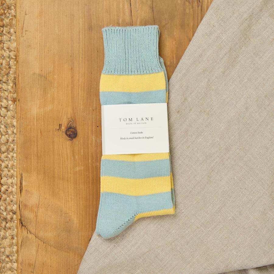 Our heavyweight cotton socks are made in England from the finest cotton. These versatile socks with a 2 tone stripe will add a splash of colour to any outfit.