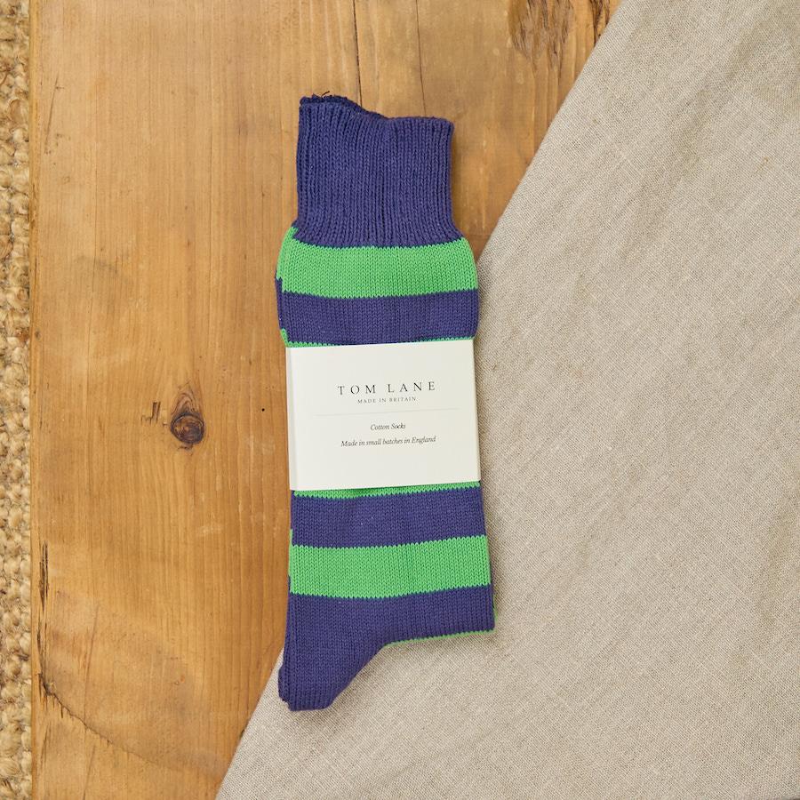 Our heavyweight cotton socks are made in England from the finest cotton. These versatile socks with a 2 tone stripe will add a splash of colour to any outfit.
