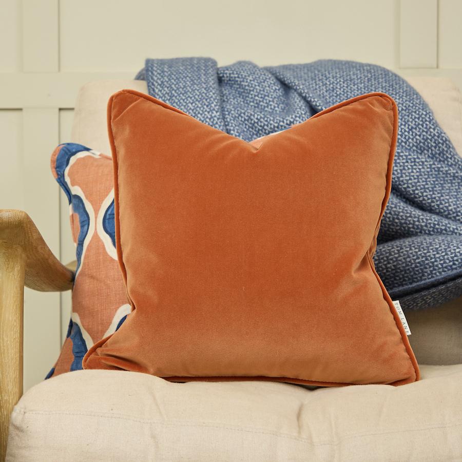Our sustainable velvet cushions are made in England from 60% Recycled Polyester. This clever fabric is stain resistant and hard wearing. 45cm x 45cm with Piped edge. Duck feather inner cushion included. Concealed zip.